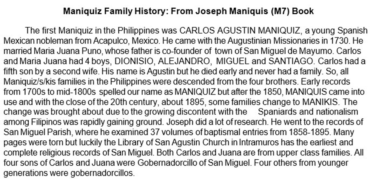 Discover the Maniquiz Family Heritage